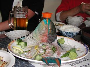 下の写真の奥に見えるのは本島です。すごく近くにある小さな島ですが驚くほど海がきれいです。![]() 泳いでみると様々な魚がたくさん見えます。フエダイ、アオブダイなど大きい魚もたくさんいて、 相変わらずどこへ行っても渓流竿・渓流仕掛けにこんなのがかかったらどうなるだろうと思いながら 釣り始めました。えさは魚肉ソーセージ。 まず釣れたのは「オジサン」 ひげがはえてて愛嬌のある顔です。 ![]() ![]() ![]() ![]() 本島に帰り、居酒屋でアオブダイの御造りを頼みました。 ![]() 沖縄ではポピュラーな魚で、あっさりして旨いのですが慣れないとちょっと磯臭さがあります。 後でインターネットで調べてみると「アオブダイ中毒」というものがあるらしく、 筋肉痛や痙攣・痺れなどの症状がでて、死に至る場合もあるようです。原因もはっきりせず 血清などもないらしく、ビックリしました。 ※注意・・・ 後日、沖縄県宮古支庁 農林水産振興課 水産係の方から 以下のような メールをいただきました。 「写真で見る限り、これはアオブダイではなく、別のブダイ類です。 安心して召し上がれます。 沖縄の人は、青・緑色系のブダイを呼ぶとき、アオブダイという 言葉をよく使います。地元の新聞記事でさえ、ほとんどの場合、ア オブダイと紹介されます。本物のアオブダイは、沖縄の海にも生息 しているようですが、滅多に見かけることはなく、市場に出回るこ ともほとんどありません。西尾様のおっしゃるとおり、本土各地で 食中毒事例がありますので漁獲しても市場で扱わず、廃棄されてい る可能性もあります。」 沖縄そばも随分食べました。去年も食べた名護の「宮里そば」は相変わらず旨かった。 空港に入ってる「琉球村」の中味そばも旨かった。またしても民謡やウチナーぐちには あまり触れられない旅でした。 |