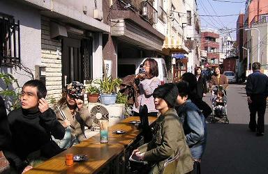 アンティークのオープンカフェが立ち並ぶ。