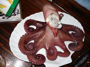その後、創作で歓迎会。ご住職「ボン様」の差し入れてくれた「赤霧島」や地ダコの丸茹でなどで