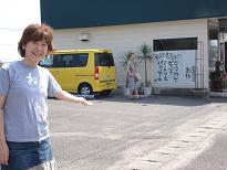その後は一般道を走り東かがわ市へ。創作でセッティング中、マスターの依頼でみかちゃんが看板を書くことに。