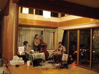 麺は中華麺なのさ。不思議に旨い。![]() 初日は高田にあるJAZZ SWINGで演奏。その前に軽く飲む。 いい感じの町並み。近くの居酒屋「雁木亭」へ。刺身、のっぺ、きぬかつぎ、やぶたけ汁などをつまみに 吟田川(ちびたがわ)などをいただく。至福の時。 ![]() ![]() のち演奏。集まってくれた方々のおかげですっかりいい気分でした。 ありがとうございました。 ![]() 終演後は翌日の会場である アロマアートスペースRueに移動し、O氏のお母さんの手料理などに舌鼓。絶品でした。 エゴ、むかご、冬瓜、たら汁、柿の入った白和え、などなどをつまみにどぶろく。至福の時2。 ![]() 翌日はO氏の企画「おいしいたのしいうれしいの日」と題して、アロマアートスペースRueで 朝10時ころから、広い庭のあちこちでいろんな人がいろんな事をやってました。 朝から地酒を飲みながら 夕方まで楽しくのんびり過ごしました。おいしいカレーやガパオなども食べつつ。ぼくも「 てきとうな笛」というワークショップをテキトーに開催。 切りっぱなした竹をななめに吹くというもので、 数人の人が興味をもってくれて鳴らせるようになりました。 ![]() 夜はライブ。 ![]() 今回も、O氏をはじめたくさんの人にお世話になりました。ありがとう。 上越いいところです。また行きます。酩酊節をたずさえて。 |