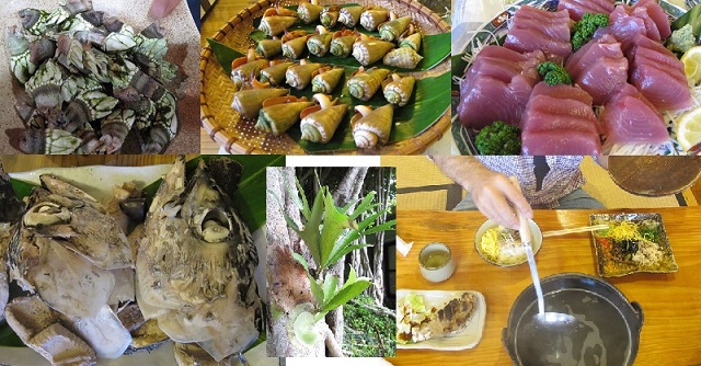 奄美大島・加計呂麻島で食べたもの。 空港近くでラーメン。とんこつでした。あっさりだが焦がしニンニク入り。なかなかうまい。 そののち名瀬の居酒屋で、カメノテ。サービスで出してくれました。うまいよ。黒糖焼酎は「 浜千鳥の詩」。翌日の加計呂麻島ではマグロ!うまいね。ホントはこれでご飯が食べたかったけど、我慢して酒を飲みました。 黒糖焼酎は「瀬戸の灘」!!これはクセがあっておもしろくて旨い!おすすめ。あとトビンニャって巻貝。これも旨い! 海水で茹でるといい具合に貝から出てきたところで茹であがるんだってさ。 宿の前が海なので、夜、桟橋で釣り。いつものように渓流仕掛け。えさはマグロの切り身を一つ拝借。 雑魚が入れ食いだった。1尾だけ強烈な引きで釣り上げたのは25cmくらいのうまそうな魚。 宿のオーナーに聞くと「バラフエダイ」というシガテラ毒を持っている可能性がある魚で食べないほうがよいとのこと。 残念!でも知らなきゃきっと食べてたな。しかも味はそうとう良いらしい。 最終日には鶏飯を食べた。おいしいねえ。腹いっぱい。 奄美はいいなあ。また行きたい。 |