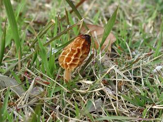 桜が満開の光が丘公園(そのすぐ隣にぼくは住んでいます)で アミガサダケを発見しました。キノコはなかなか難しいので自分一人では 採って食べる事はしませんが、この見るからに怪しげなキノコは 多分食べられるはずです。 以前、詳しい友人に教えられて食べた事がありますが、 炒めるとシャキシャキとした歯ざわりのおいしいキノコでした。 生で食べると中毒するそうです。